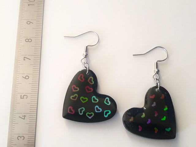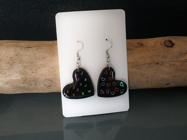 Boucles d'oreilles aux cœurs colorés hypoallergénique fait main, dans mon atelier basé en France et plus précisément en Alsace.