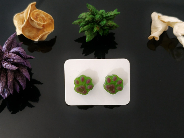 Boucles d'oreilles clous Boucles d'oreilles clous patte de chat bleu - rouge hypoallergénique fait main, dans mon atelier basé en France et plus précisément en Alsace.