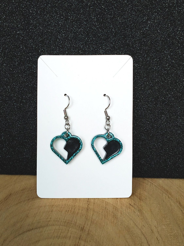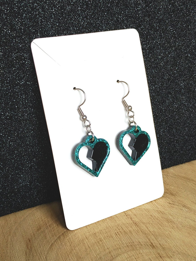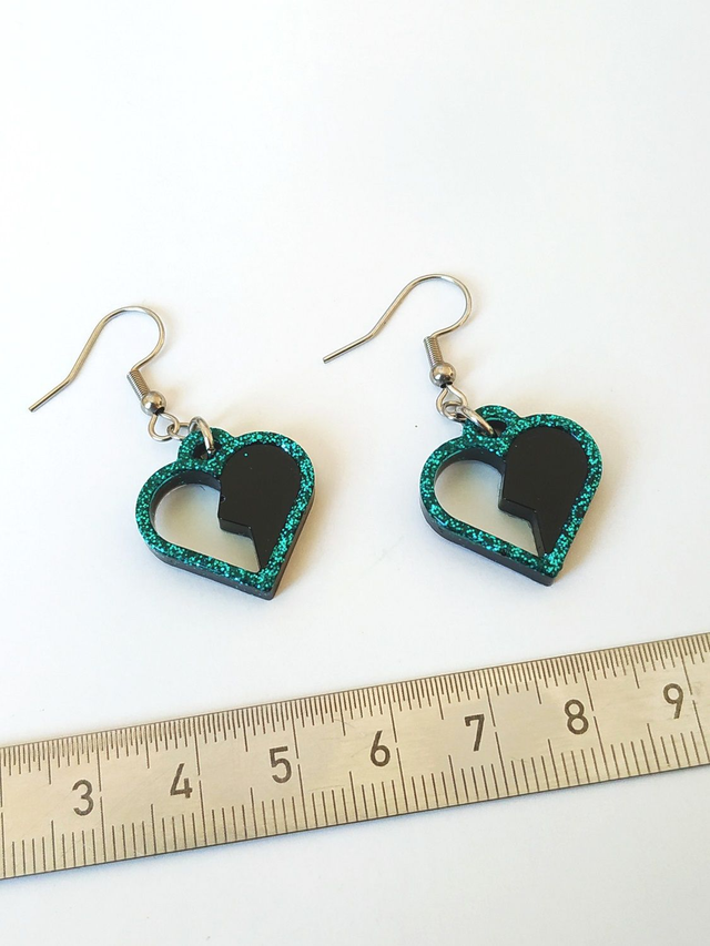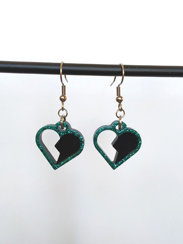 Boucles d'oreilles demi-cœur émeraude hypoallergénique fait main, dans mon atelier basé en France et plus précisément en Alsace.