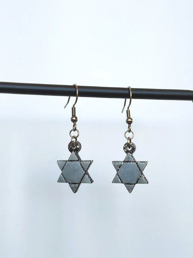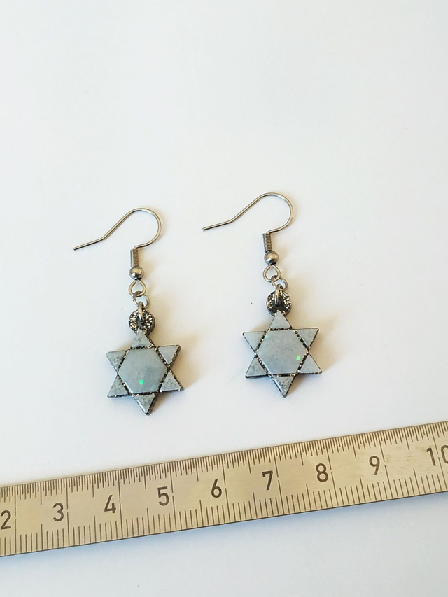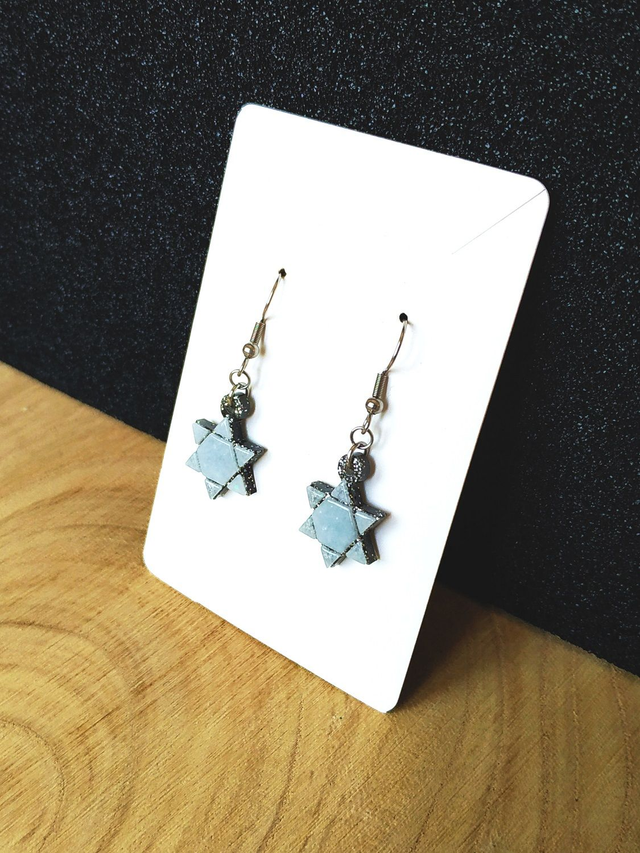 Boucles d'oreilles étoile blanche argentée hypoallergénique fait main, dans mon atelier basé en France et plus précisément en Alsace.