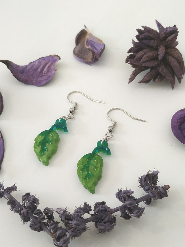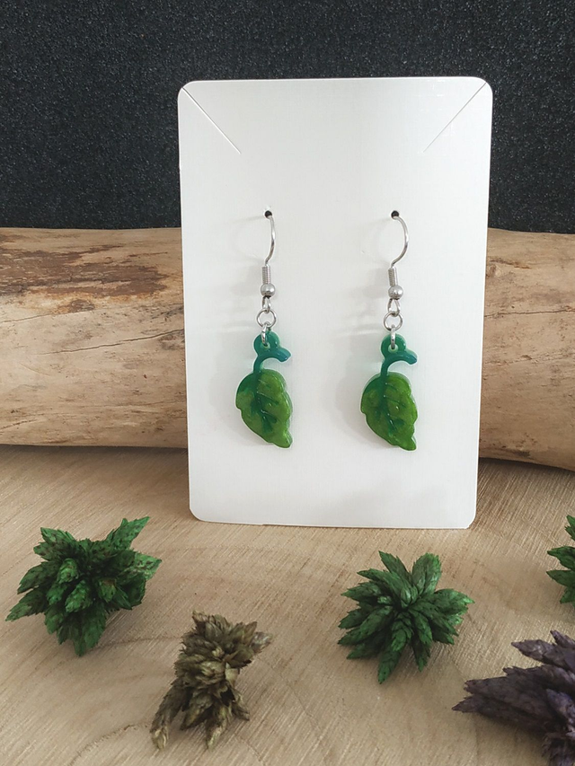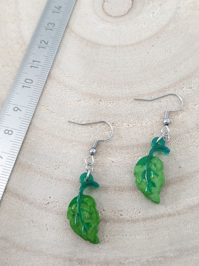 Boucles d'oreilles feuille vert foncé hypoallergénique fait main, dans mon atelier basé en France et plus précisément en Alsace.