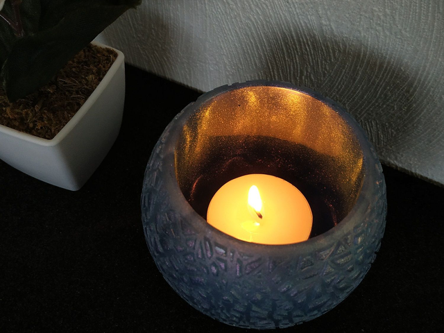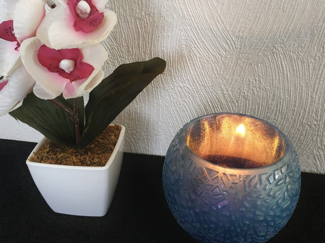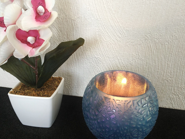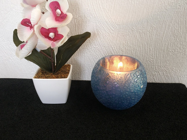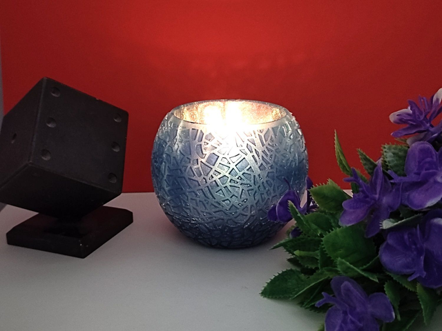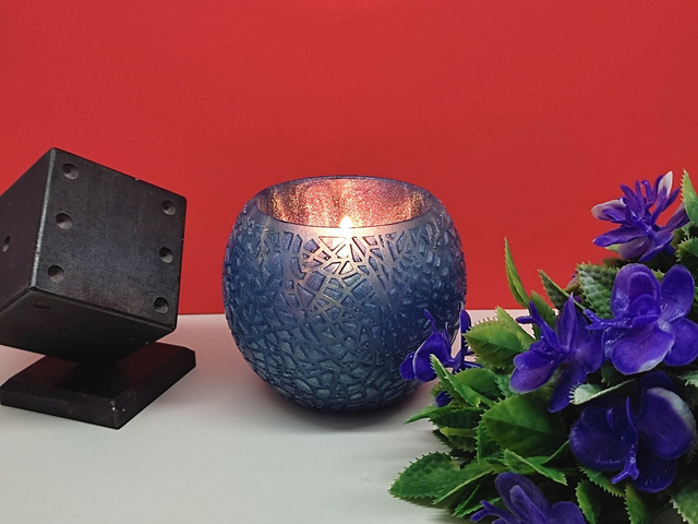 Bougeoir cristallisé violet bleuté fait main, dans mon atelier basé en France et plus précisément en Alsace.