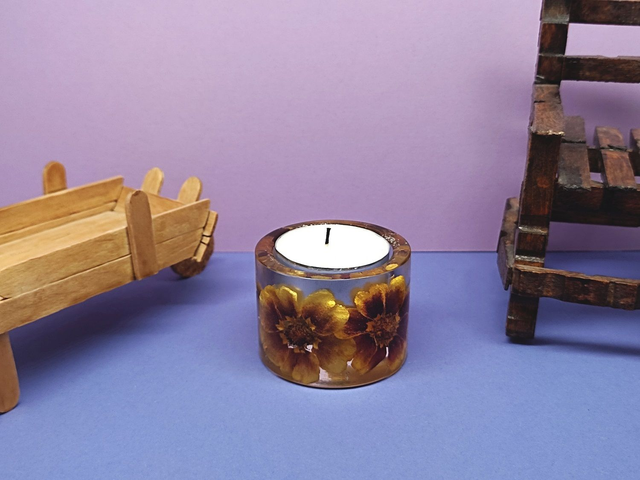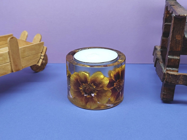 Bougeoir mini fleuri d'œillet d'Inde fait main, dans mon atelier basé en France et plus précisément en Alsace.