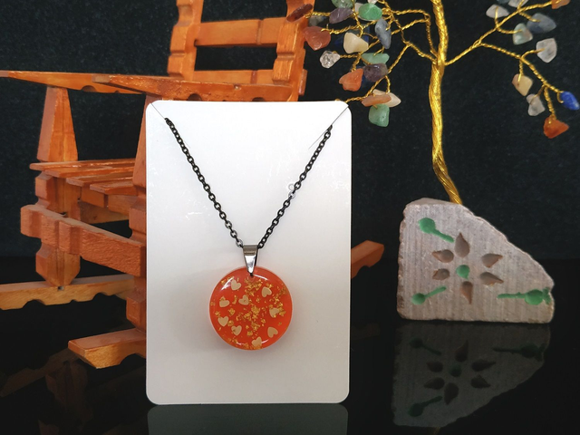- La résine utilisée pour ce bijou est brillante et non toxique.