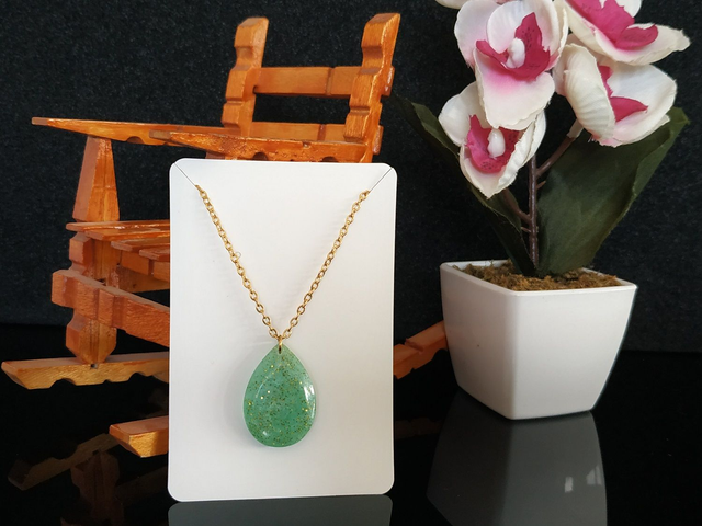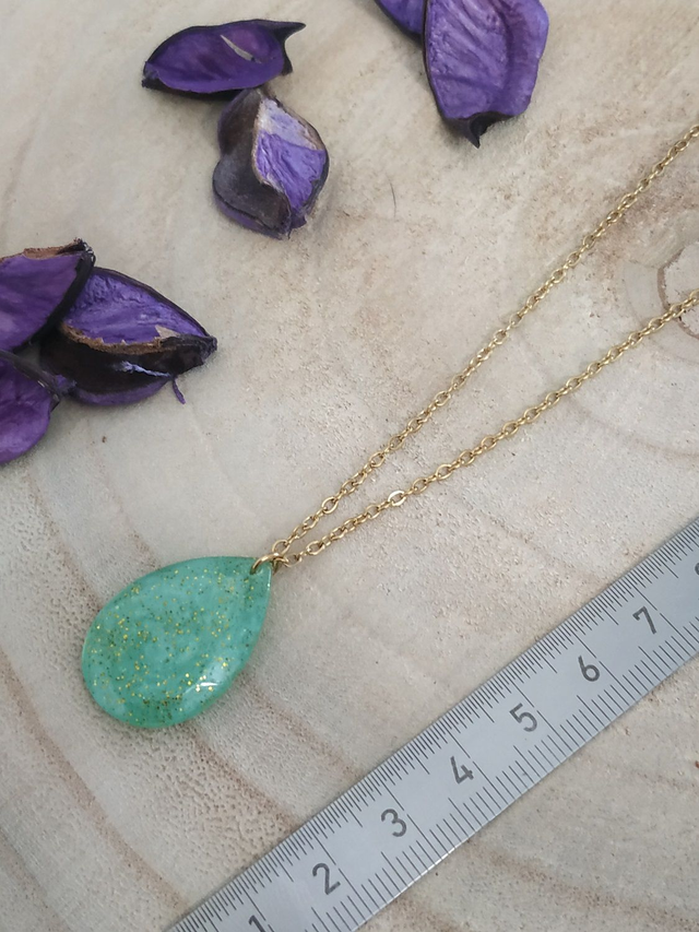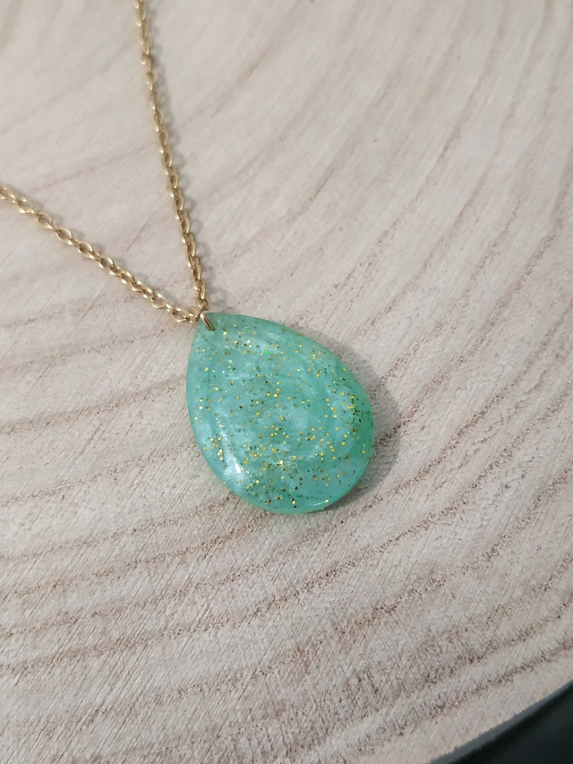 - La résine utilisée pour ce bijou est brillante et non toxique.