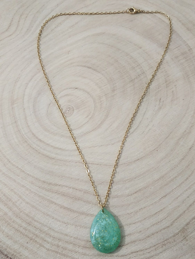 Collier effet pierre pailletée hypoallergénique fait main, dans mon atelier basé en France et plus précisément en Alsace.