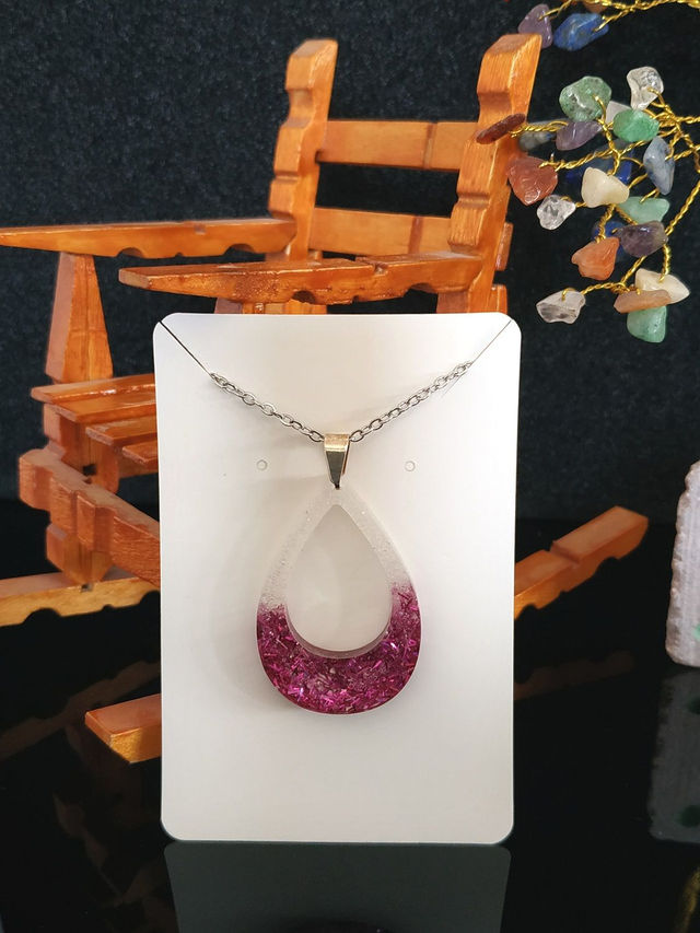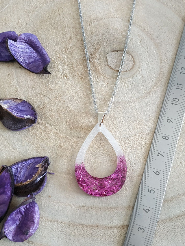 - La résine utilisée pour ce bijou est brillante et non toxique.