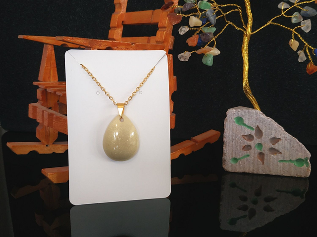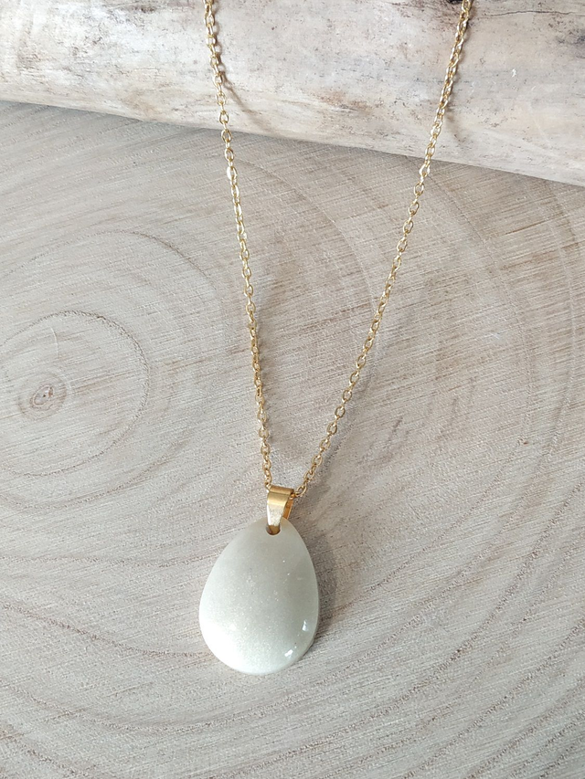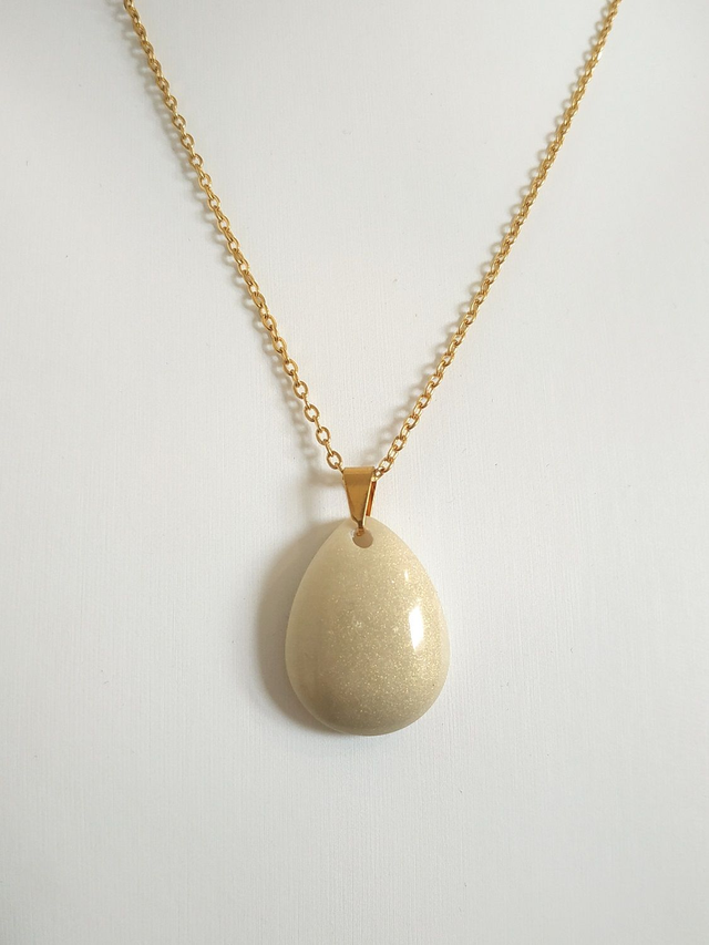 Collier goutte d'eau pailleté or hypoallergénique fait main, dans mon atelier basé en France et plus précisément en Alsace.