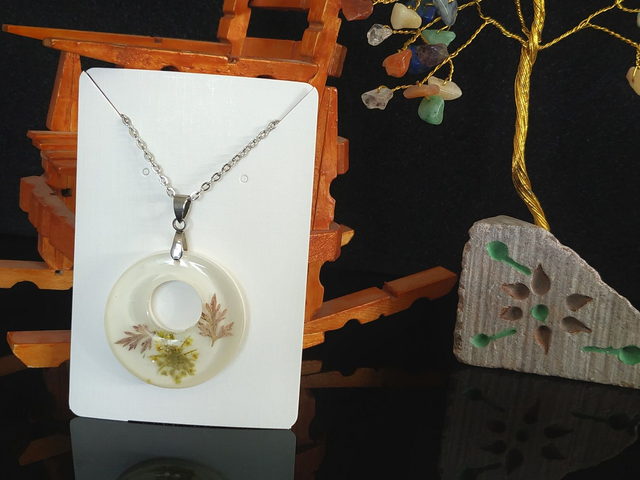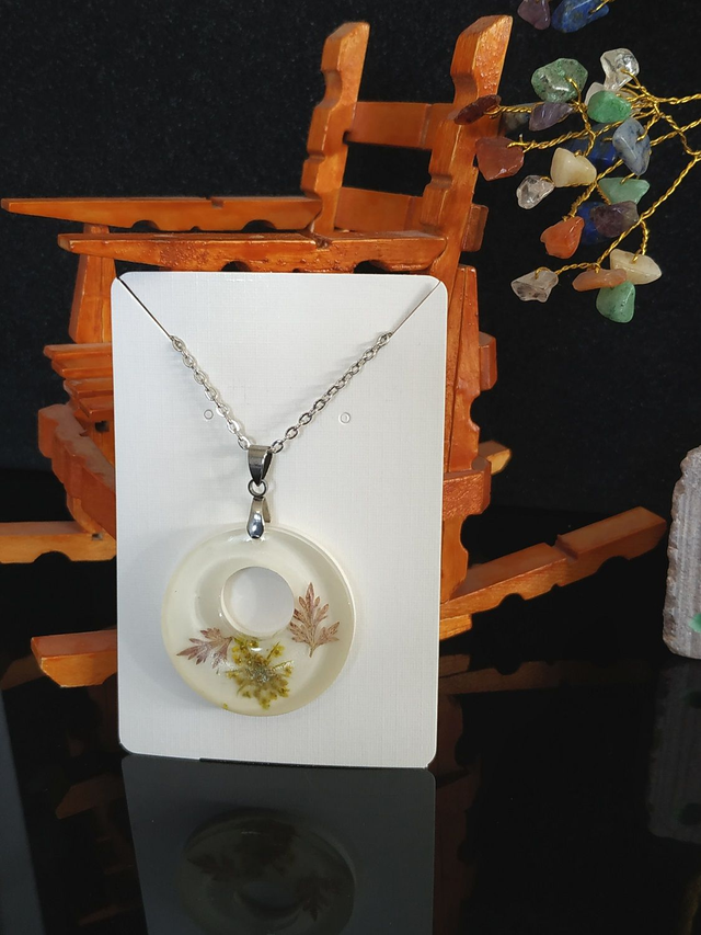 - La résine utilisée pour ce bijou est brillante et non toxique.