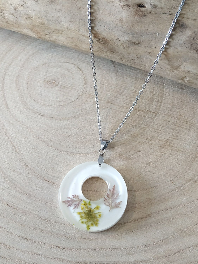 Collier nature aux fleurs de Carottes Sauvages hypoallergénique fait main, dans mon atelier basé en France et plus précisément en Alsace.