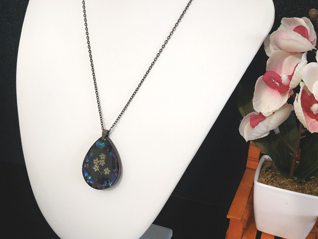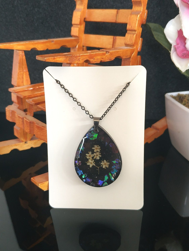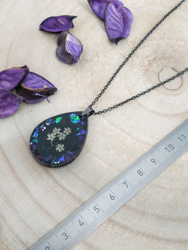 - La résine utilisée pour ce bijou est brillante et non toxique.