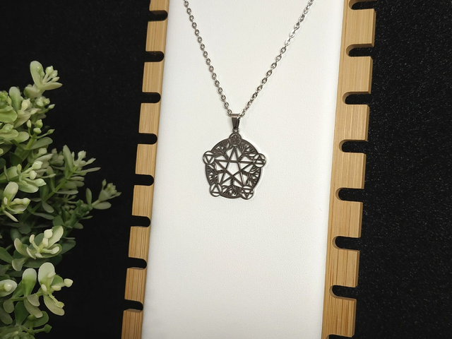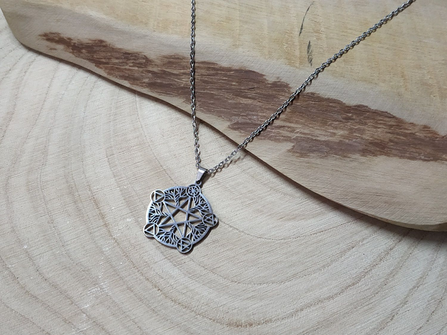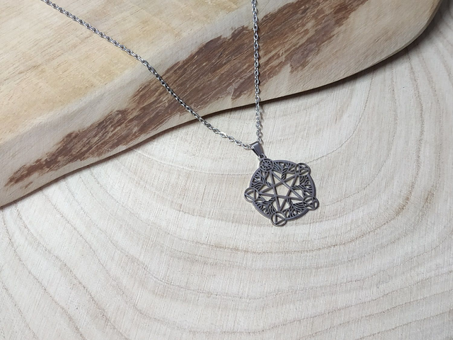 Collier pentagramme argenté hypoallergénique 100% inox fait main, dans mon atelier basé en France et plus précisément en Alsace.