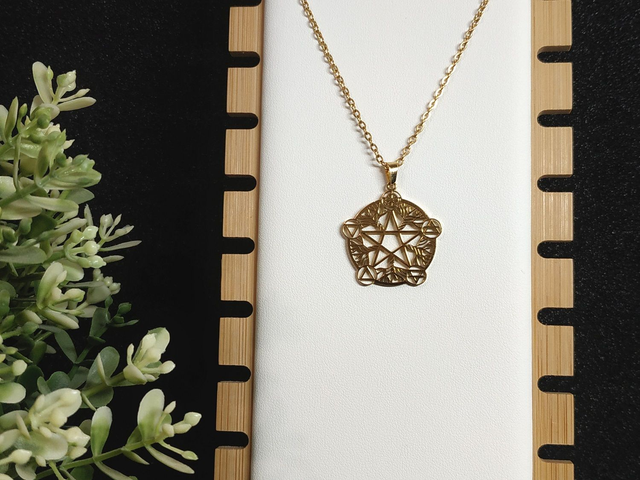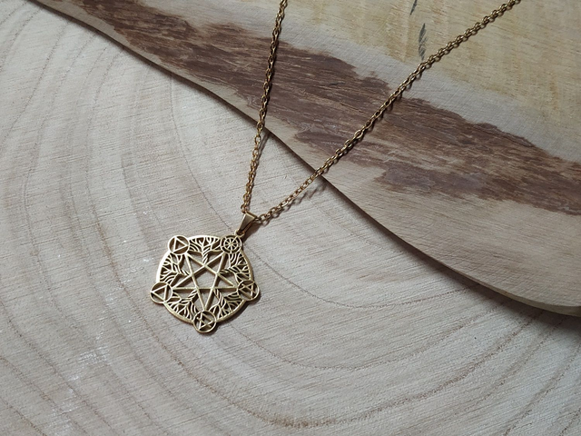 Collier pentagramme doré hypoallergénique 100% inox fait main, dans mon atelier basé en France et plus précisément en Alsace.