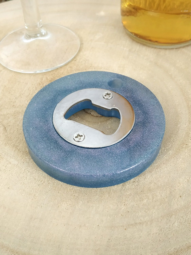 Décapsuleur au bleu étincelant fait main, dans mon atelier basé en France et plus précisément en Alsace.