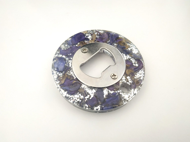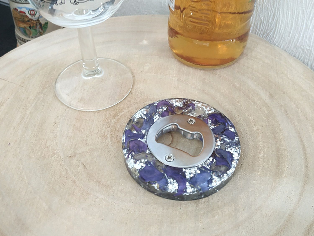 Décapsuleur aux fleurs bleues fait main, dans mon atelier basé en France et plus précisément en Alsace.
