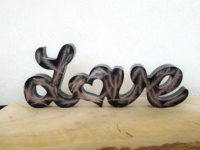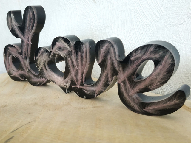 Déco LOVE noir avec fleurs de pampa rose fait main, dans mon atelier basé en France et plus précisément en Alsace.