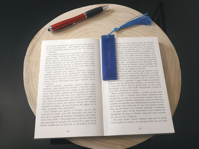 Marque page entre bleu et violet fait main, dans mon atelier basé en France et plus précisément en Alsace.