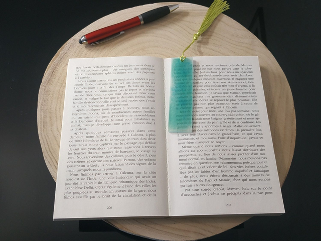 Marque page vert translucide