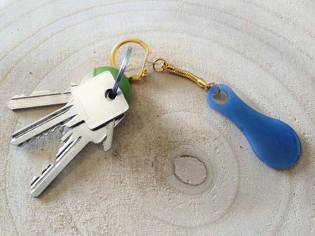 Porte-clés jeton de caddie bleu fait main, dans mon atelier basé en France et plus précisément en Alsace.