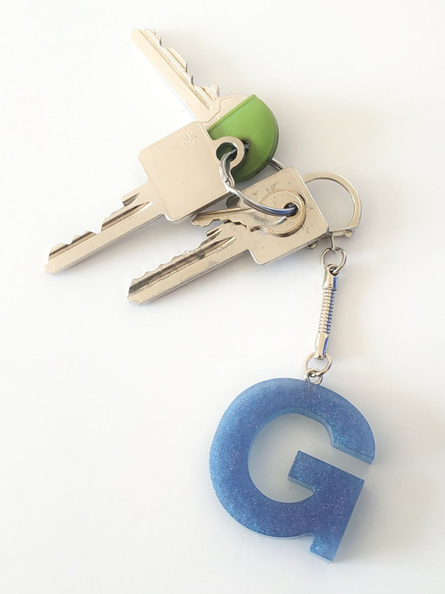 Porte-clés lettre bleu clair fait main, dans mon atelier basé en France et plus précisément en Alsace.