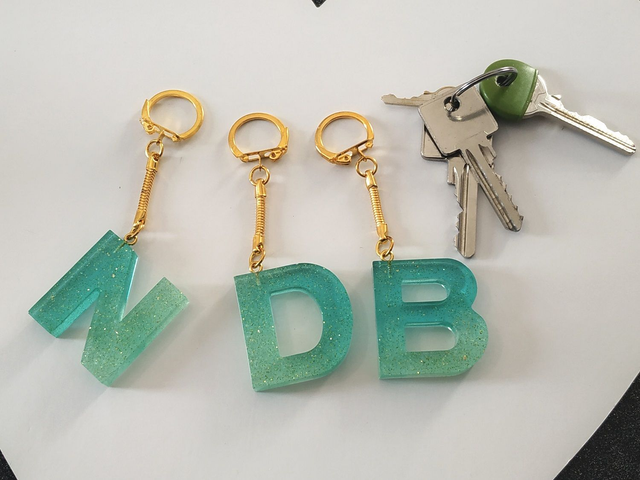 - La résine époxy utilisée pour ce porte-clés est colorée, brillante et non toxique.