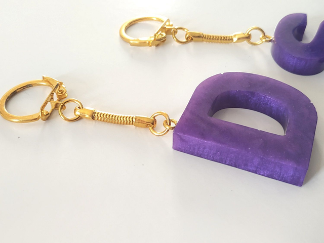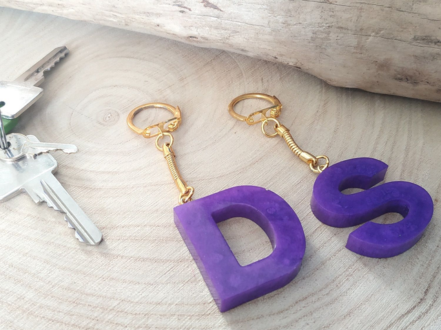 Porte-clés lettre violette fait main, dans mon atelier basé en France et plus précisément en Alsace.