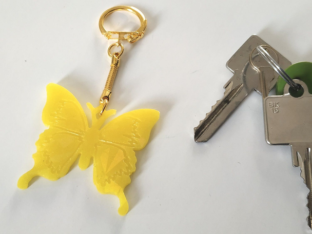 Porte-clés papillon jaune fait main, dans mon atelier basé en France et plus précisément en Alsace.