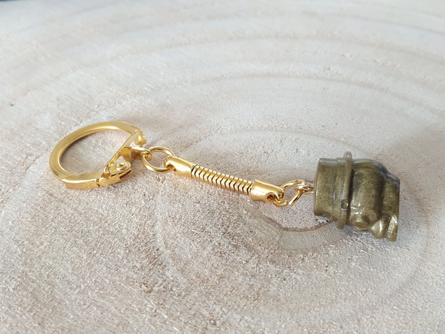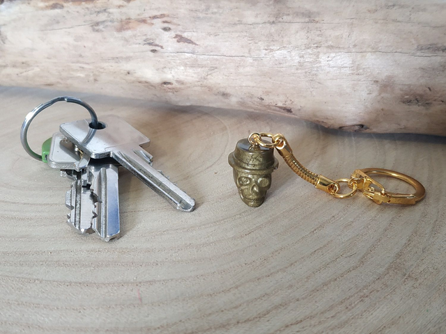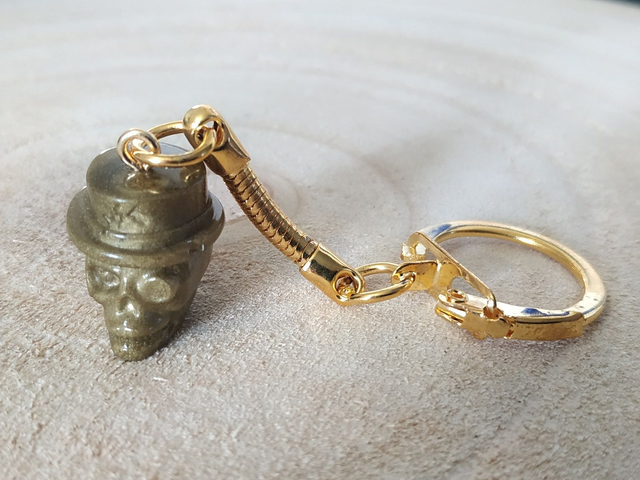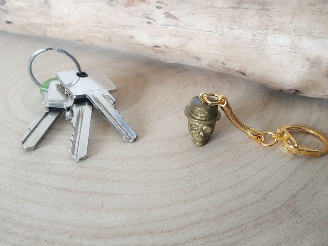 Porte-clés tête de mort bronze avec chapeau fait main, dans mon atelier basé en France et plus précisément en Alsace.