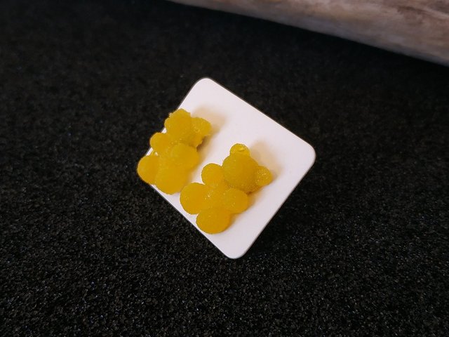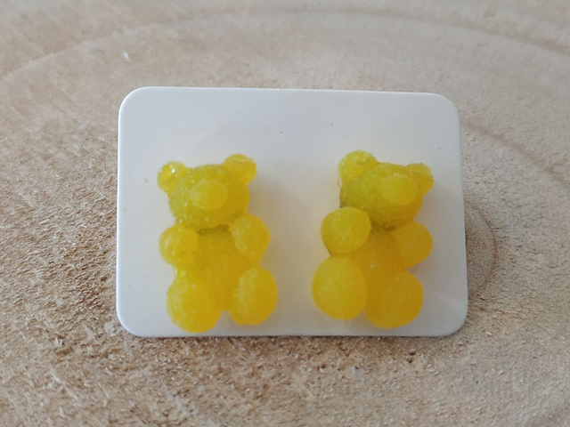 Boucles d'oreilles clous nounours jaune hypoallergénique fait main, dans mon atelier basé en France et plus précisément en Alsace.